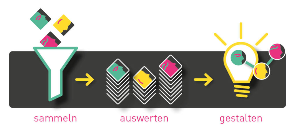 Im Setting Schule wird dafür in Form von Geschichten Erfahrungswissen bei Menschen und Institutionen, die von (problematischer) Mediennutzung betroffenen sind (junge Menschen, Eltern, Lehrerschaft, Schulen), eingesammelt. Diese Stories werden mit Blick auf die Ableitung möglicher Forschungsfragen ausgewertet bzw. handhabbar gemacht.